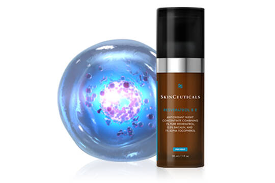 Resveratrol B E is an antioxidant night concentrate that neutralizes free radicals, supports skin's natural antioxidant defences, and improves firmness and overall radiance by combining pure resveratrol, baicalin, and vitamin E.