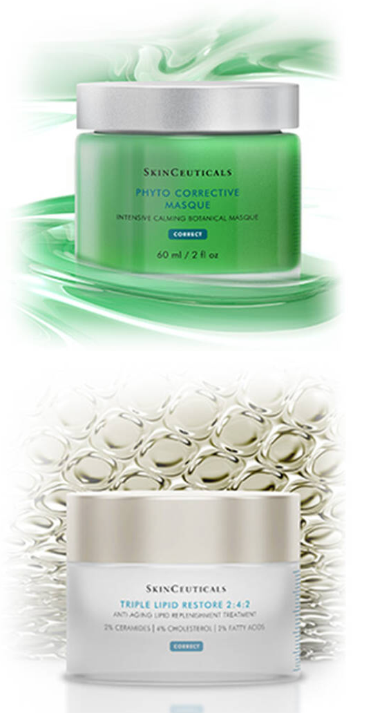 Phyto Corrective Masque, containing botanical extracts, a calming dipeptide, and hyaluronic acid, hydrates and soothes temporary skin reactivity, reducing visual redness and discomfort post-procedure.